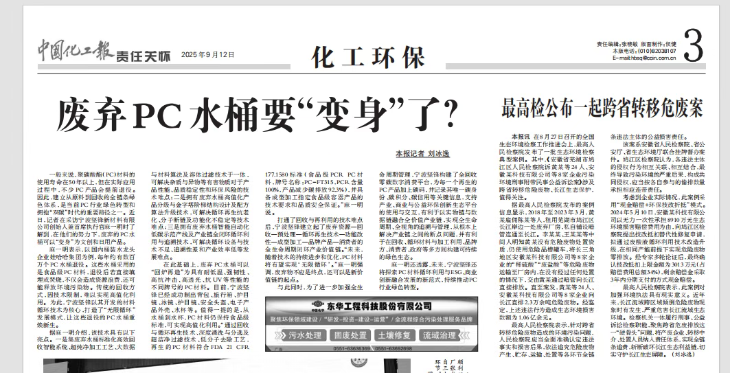 在“双碳”目标驱动下,全球化工行业正经历一场以循环经济为核心的绿色革命。作为五大通用工程塑料之一,聚碳酸酯(PC)虽理论寿命超50年,但因消费升级、产品迭代等因素,每年数千万只退役PC水桶沦为“环境负担”。近日,中国化工报专题报道宁波坚锋新材料有限公司的创新实践:通过构建“回收-再生-高值化”全链条绿色体系,让废弃PC水桶“变身”为护目镜、电子产品外壳、旅行箱等文创与日用精品,为行业树立了技术驱动型绿色转型的典范。