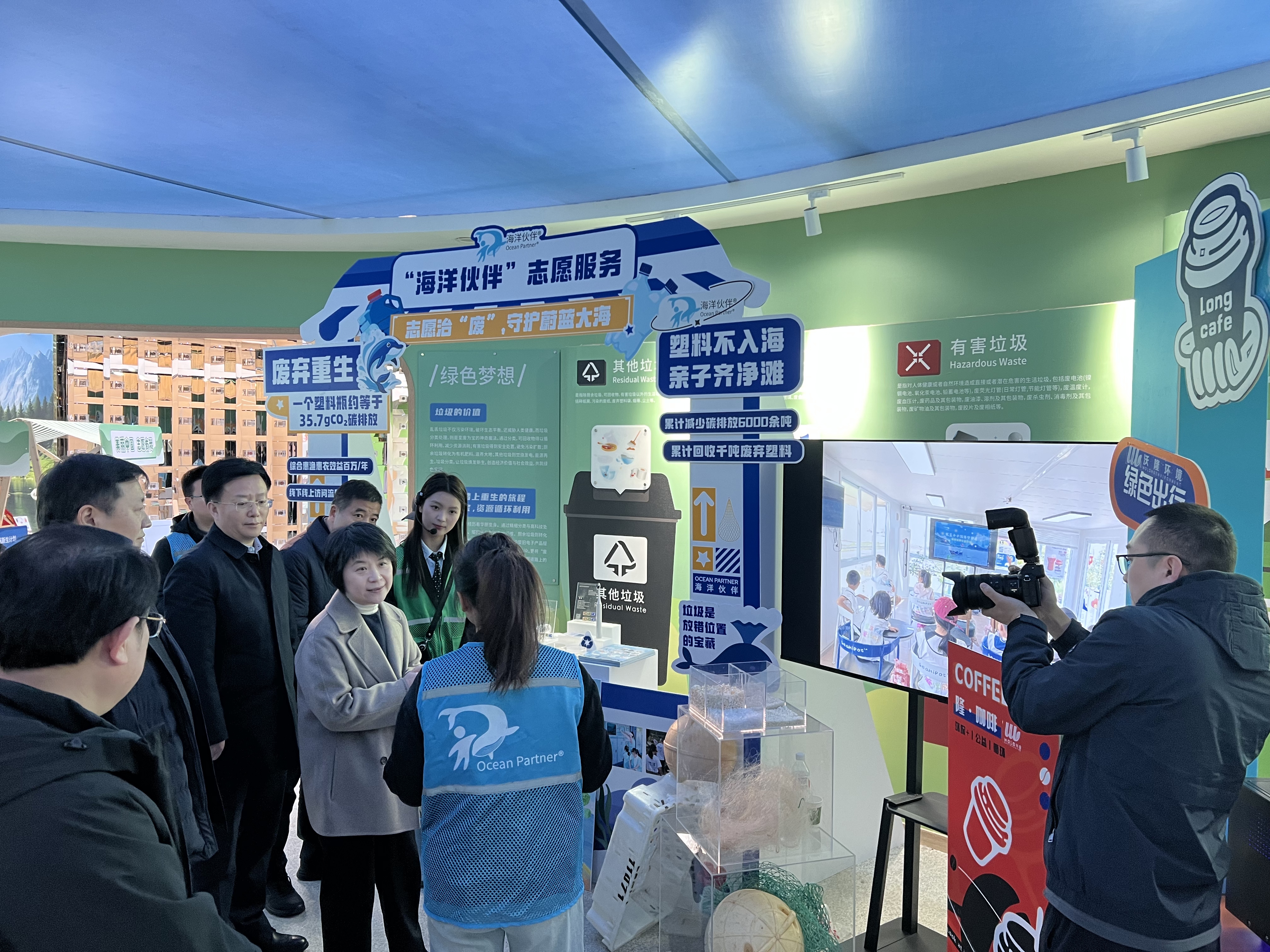 生态环境部党组成员,副部长郭芳、宁波市政府党组成员,副市长徐强,各省、自治区、直辖市及新疆生产建设兵团生态环境厅(局)负责同志,生态环境部有关司局、部属单位负责同志纷纷参观了解“海洋伙伴”展区,“海洋伙伴”志愿者为其介绍志愿服务内容和取得的成就,并展示本次会议的代表证均为来自“海洋伙伴”回收的海漂垃圾再生并通过3D打印制成,将海洋污染转化为实用价值产品。